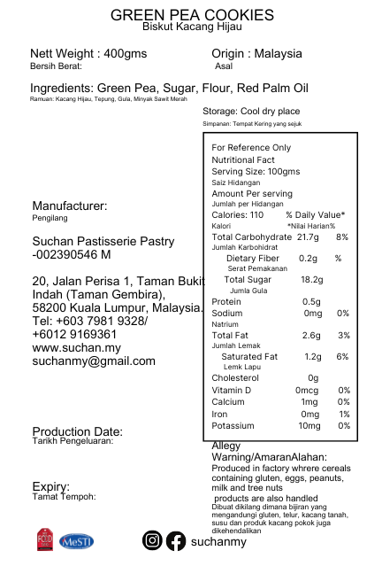EMERALD MELTIES COOKIES /GREEN PEAS COOKIES - PRE ORDER 3 DAYS ADVANCE NOTICE
